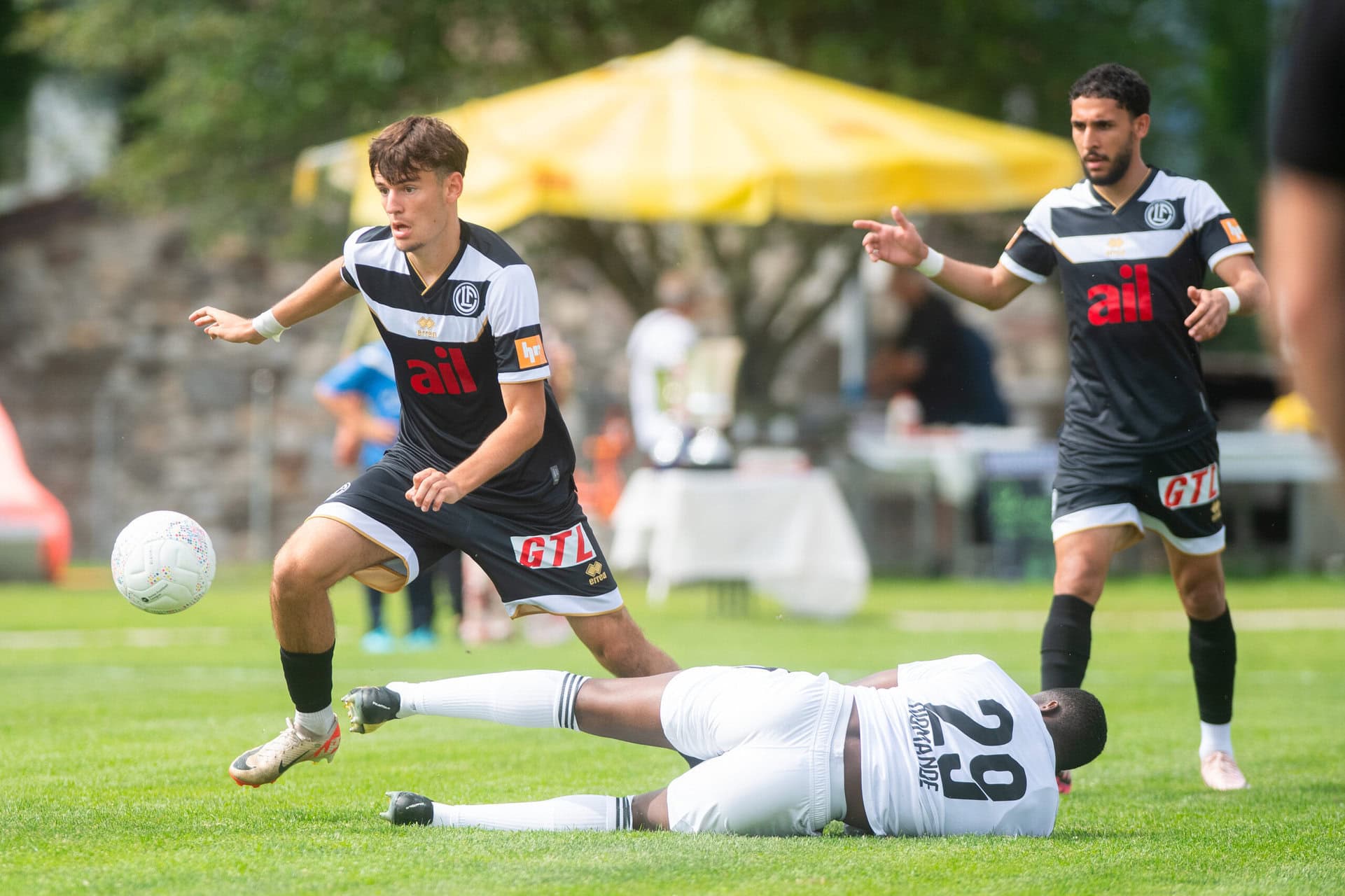Il primo tempo è stato giocato a ritmi non eccelsi visto l’afa che regnava. Ad aprire le danze sono stati i bianconeri con il giovane centrocampista Ryter (ex Basilea) che da buona posizione non ha inquadrato la porta. In seguito ci sono state conclusioni di Cimignani e Bottani parate. Sul conto dei romandi una traversa su colpo di testa di Koré. Il Lugano è passato in vantaggio dopo 20 minuti con Mahou che, liberato da Bottani, ha evitato il portiere e ha insaccato. Prima della pausa Valenzuela ha colpito l’asta su calcio di punizione.